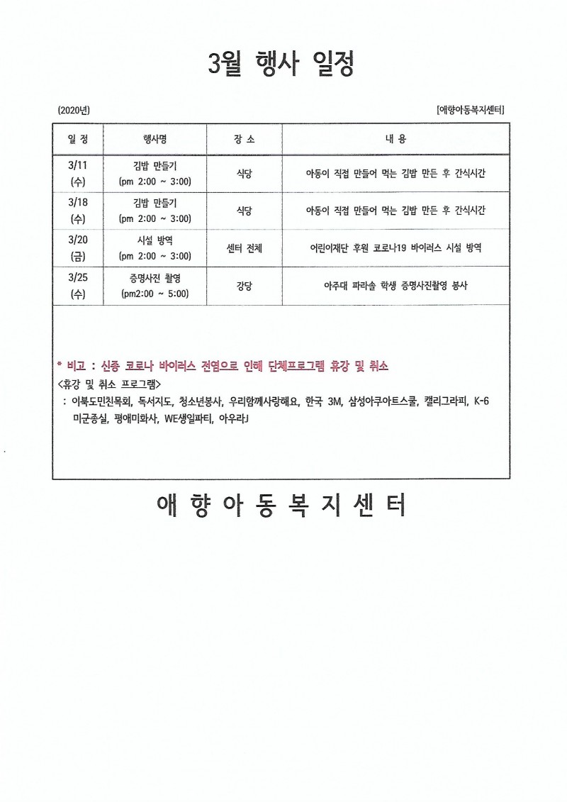애향아동복지센터는 개인정보를 중요시하며, 정보통신망 이용촉진 및 정보보호 등에 관한 볍률을 준수하고 있습니다.