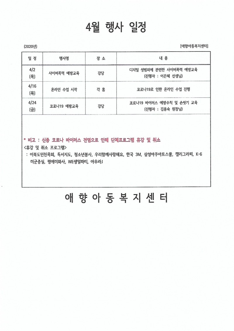 2020년 4월 행사