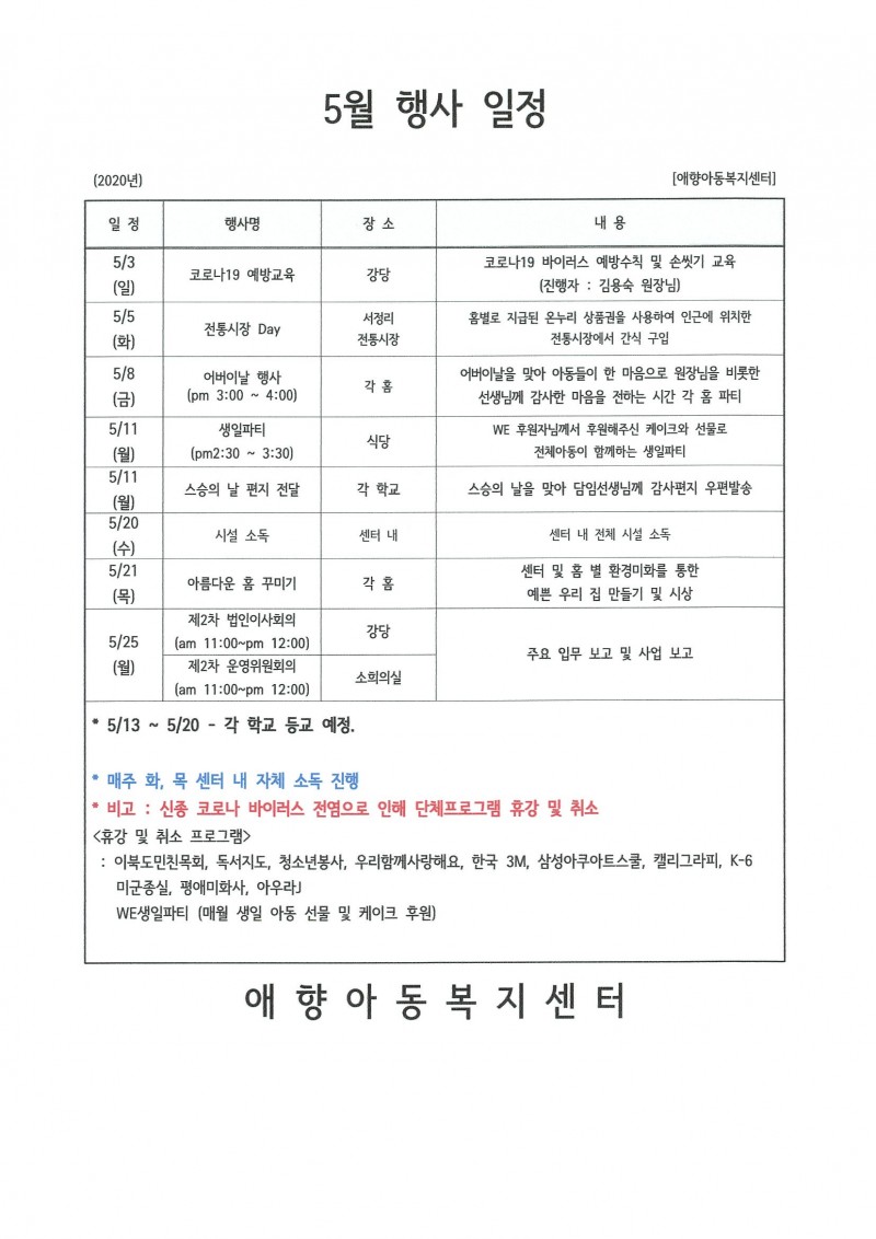 2020년 5월 행사
