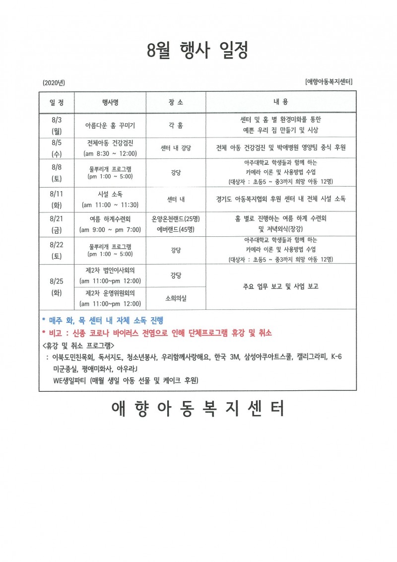 애향아동복지센터는 개인정보를 중요시하며, 정보통신망 이용촉진 및 정보보호 등에 관한 볍률을 준수하고 있습니다.