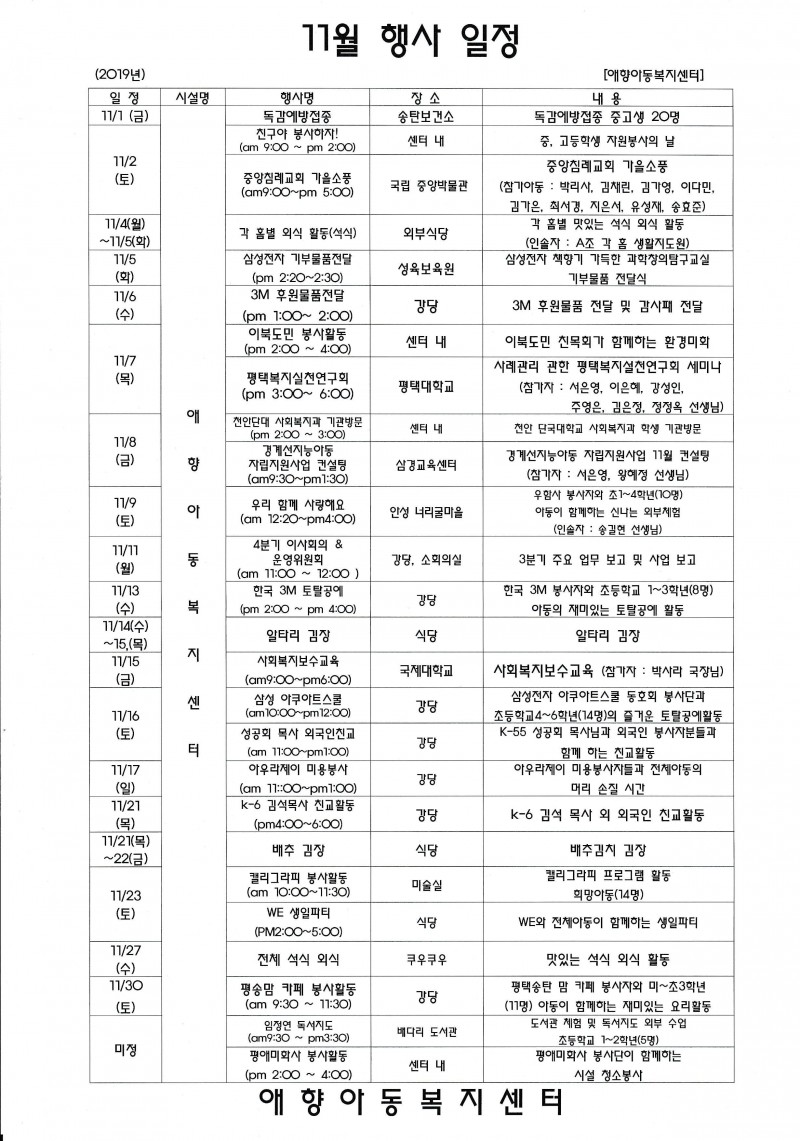 2019년 11월 행사