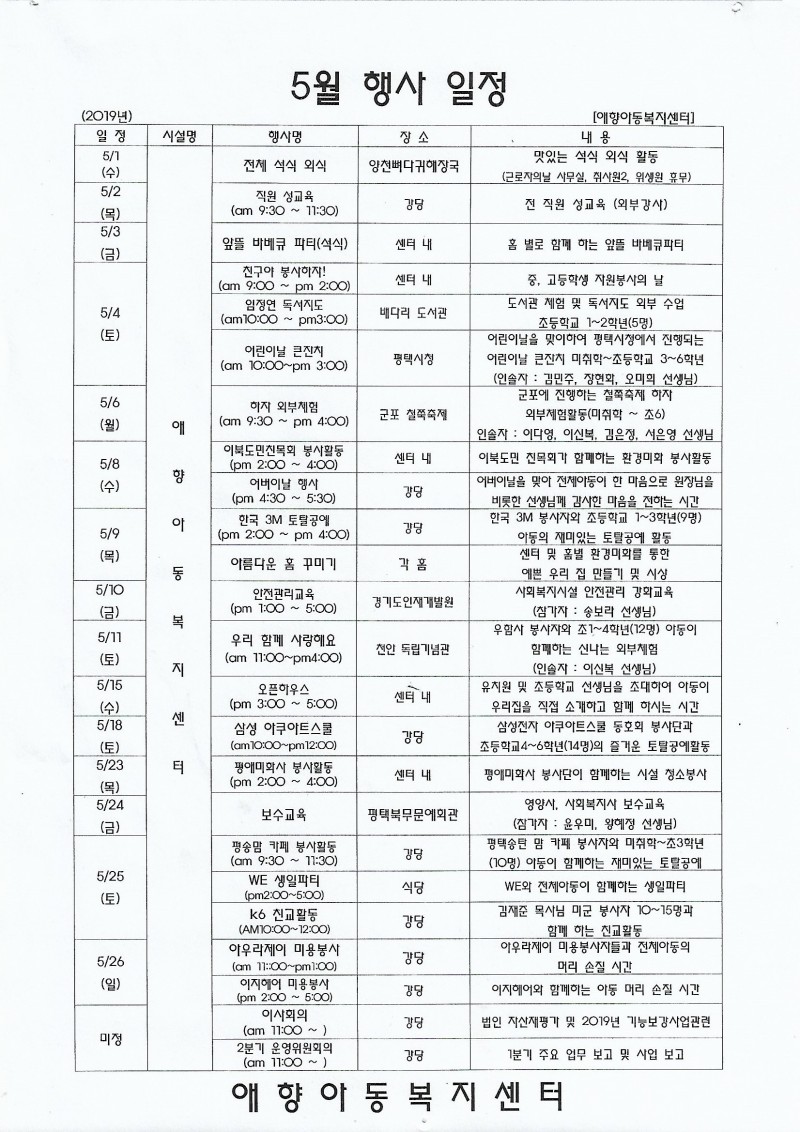 2019년 5월 행사