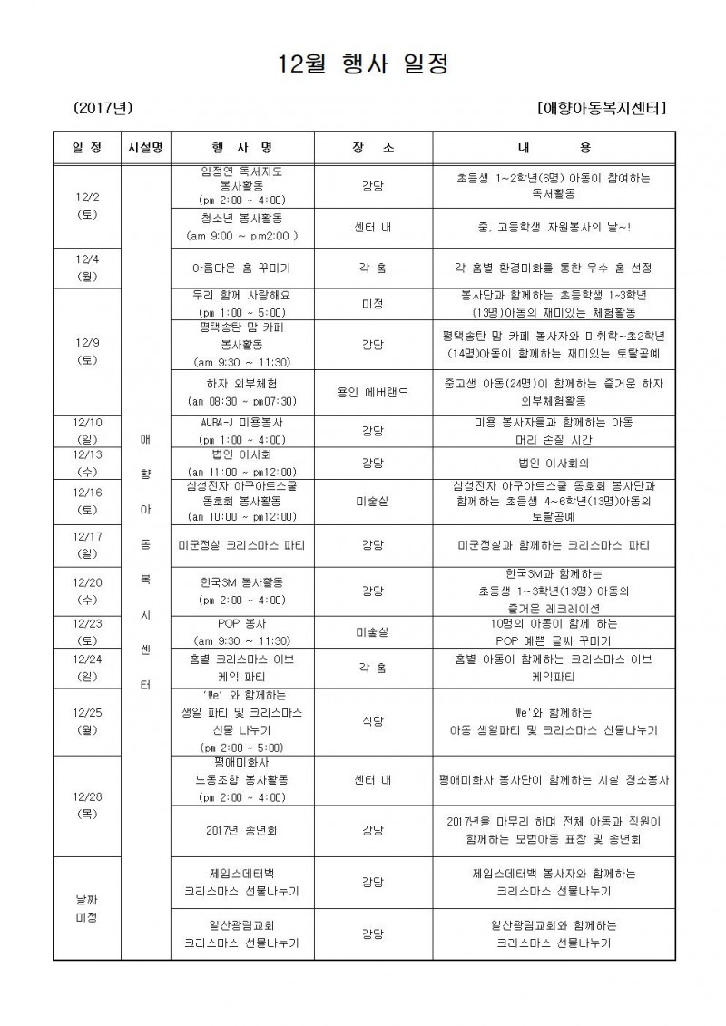 12월 행사일정