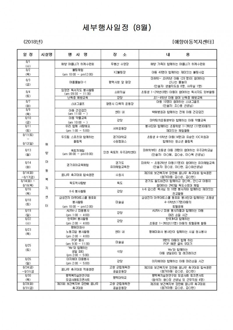 8월 행사일정