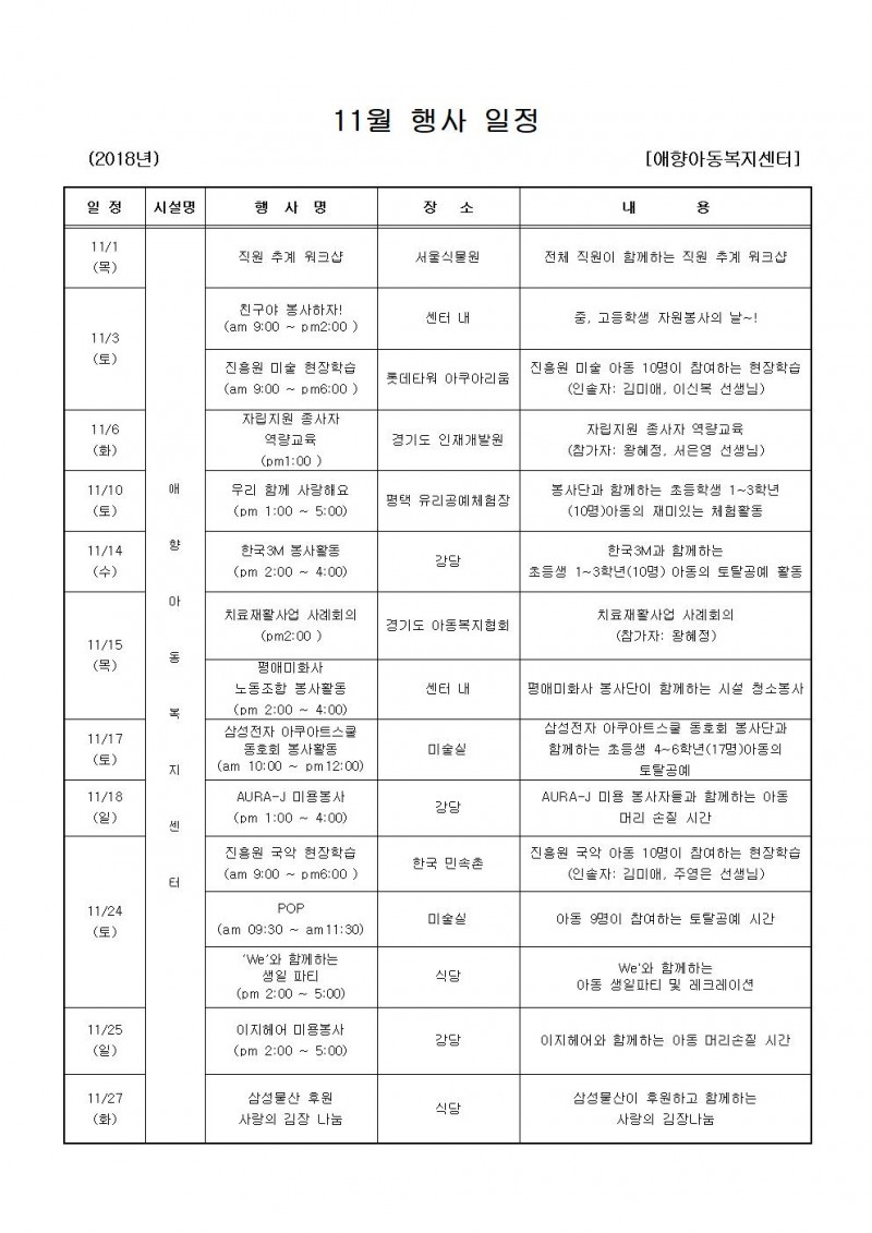 11월 행사일정
