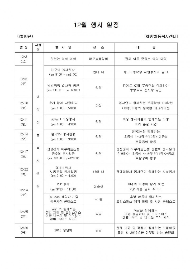 12월 행사일정