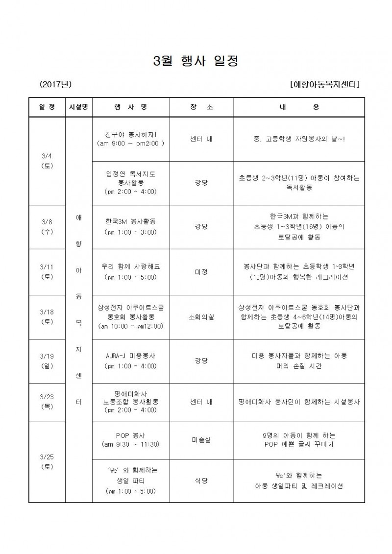 3월 행사일정