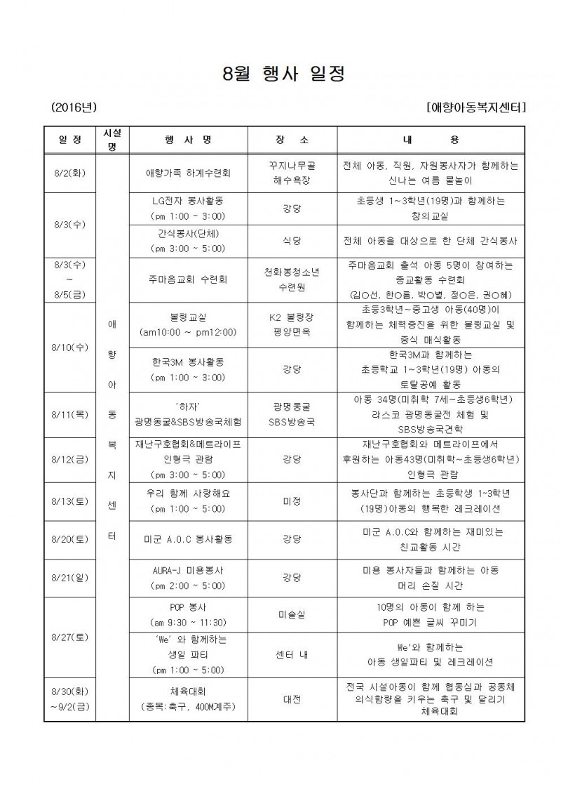 8월 행사일정