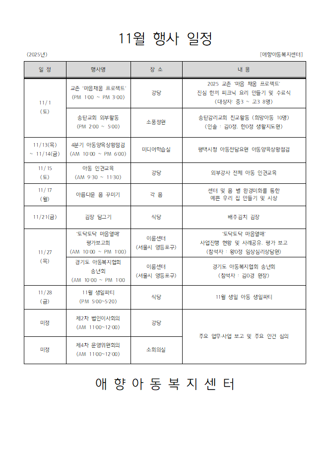 2025년 11월 행사일정
