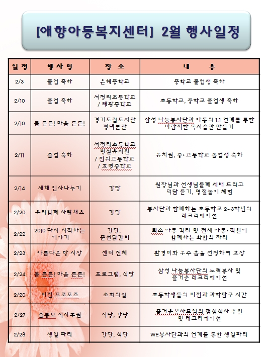 애향아동복지센터 2월 행사일정