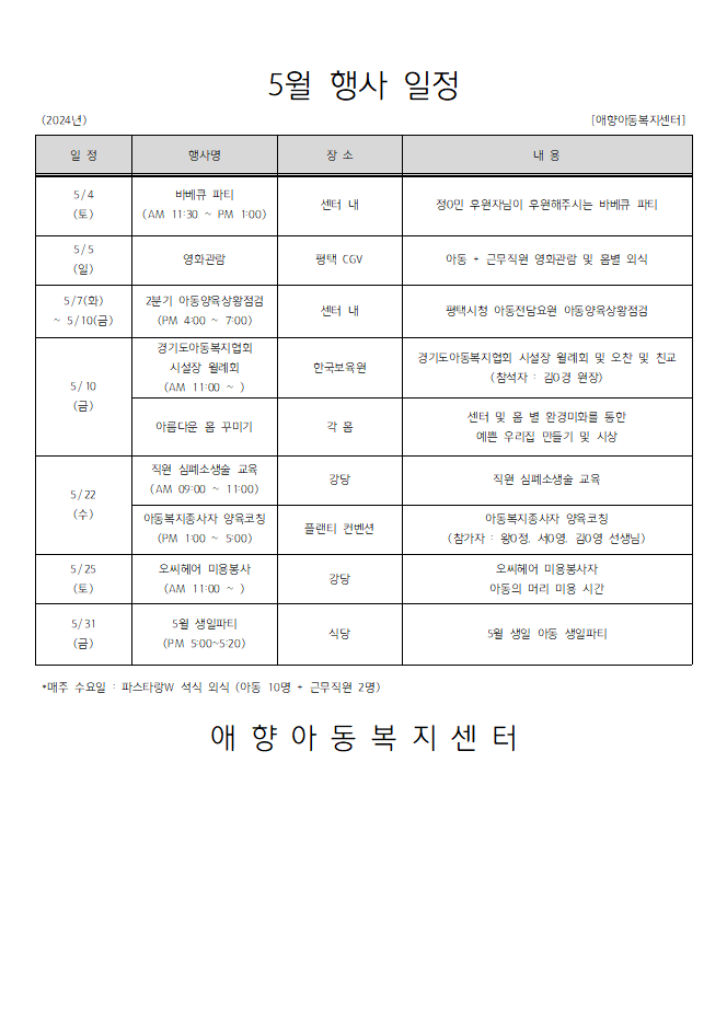 2024년 5월 행사일정