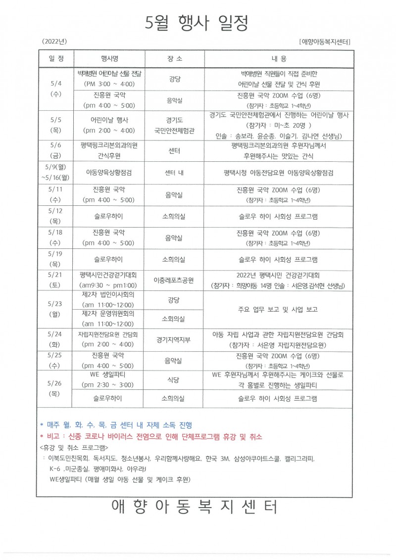 2022년 5월 행사일정