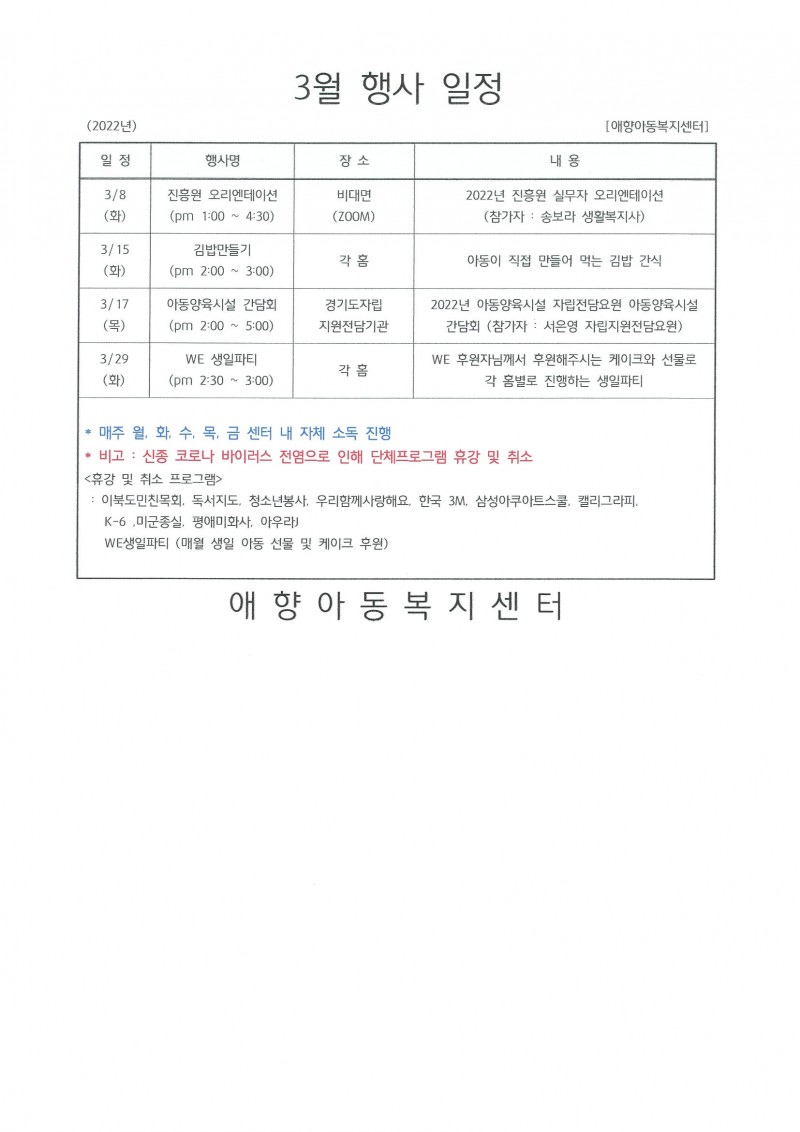 2022년 3월 행사일정