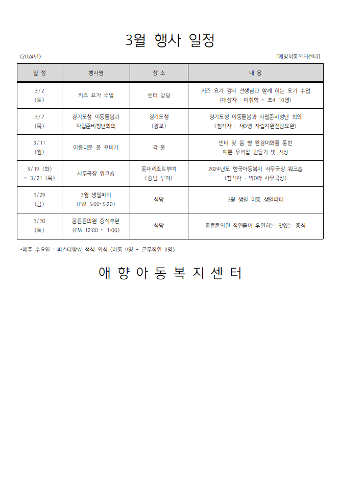 2024년 3월 행사일정
